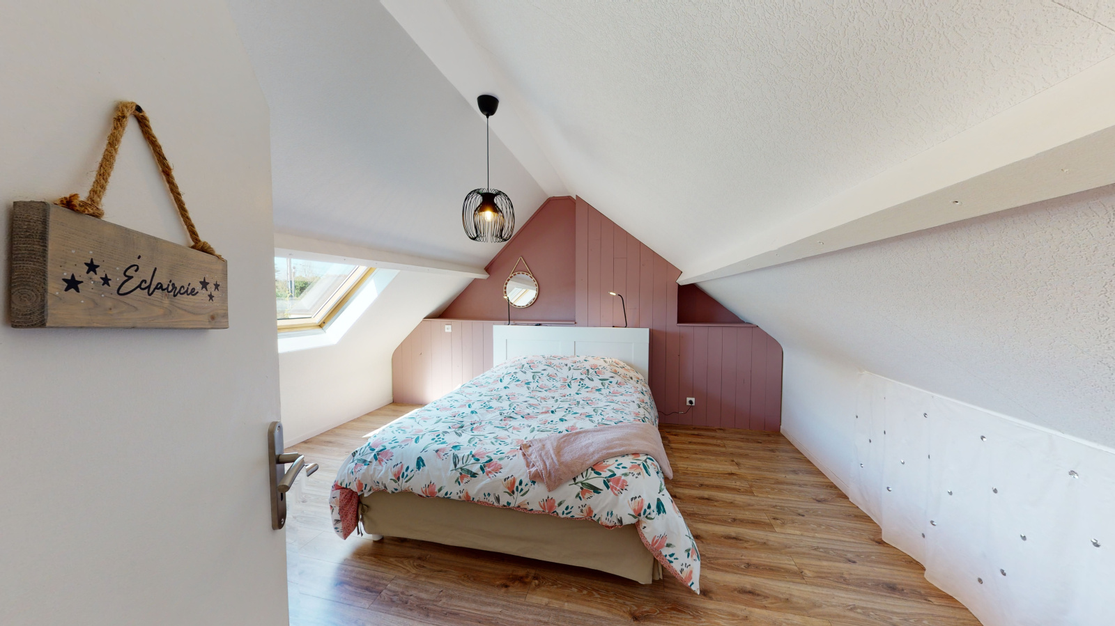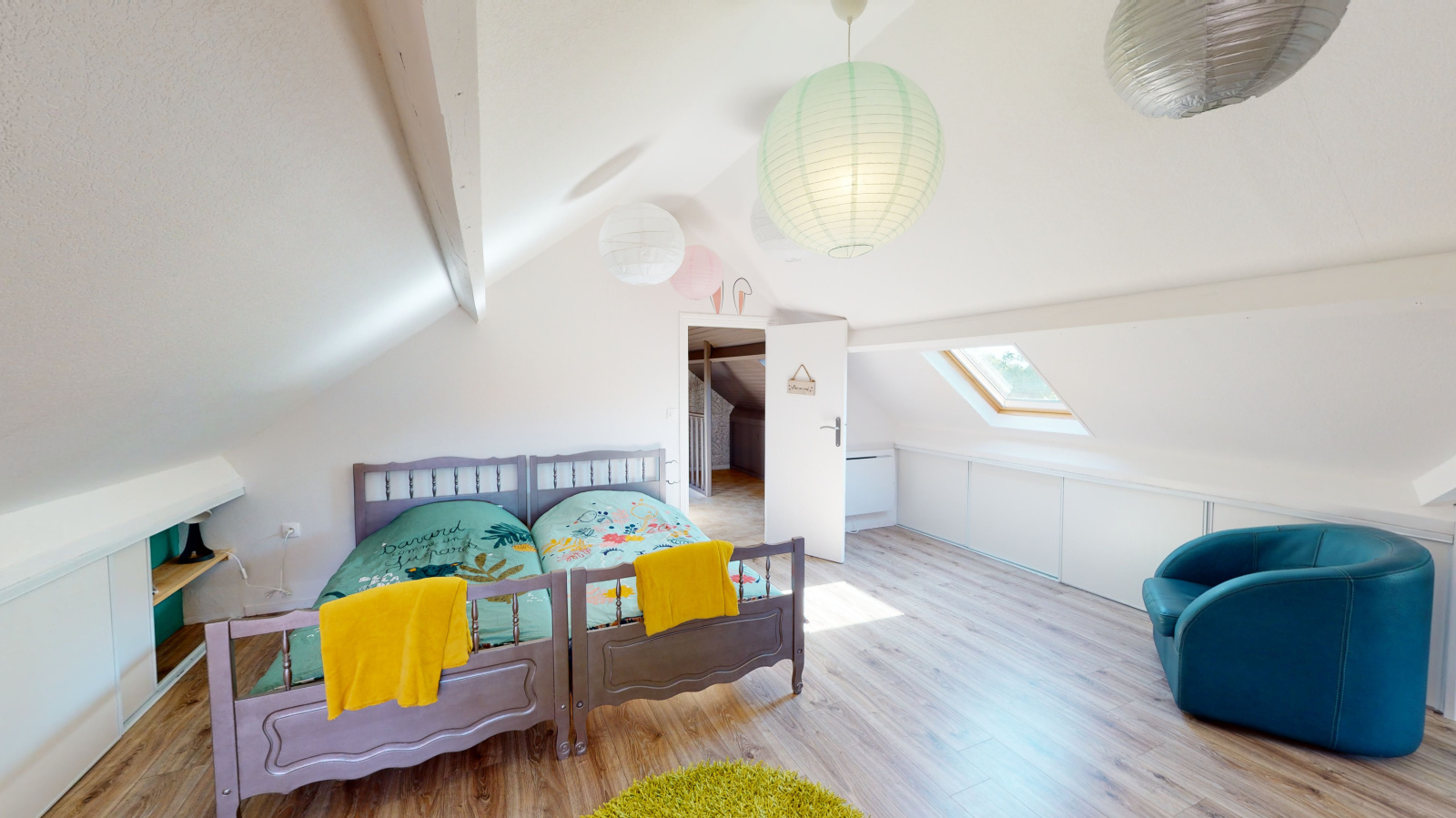 À l'étage , deux chambres supplémentaires et une pièce accueillent les enfants ou les invités dans des espaces calmes et agréables, parfaits pour se reposer. Une salle de bains avec WC complète ce niveau, permettant à chacun de disposer de son espace personnel en toute intimité.